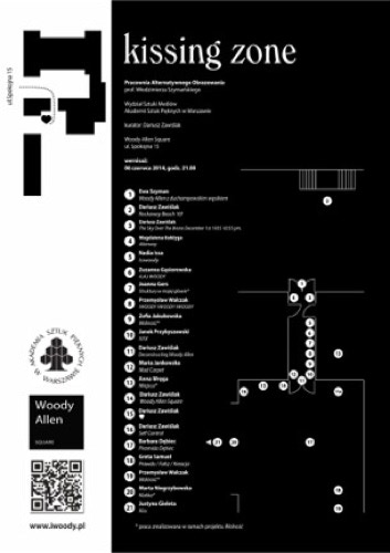 The same name was given to the whole exhibition of atelier that I became a curator. In the project participated students and PhD candidates of the department and invited guests. Twenty one works were presented including my own works: „The Sky Over The Bronx December 1st 1935 10:55 PM.”, „Rockaway Beach 10!”, „Self Control”, „♥”, „Woody Allen Square”, „Deconstructing Woody Allen”. Happening “Kissing Zone” opened the atelier exhibition.