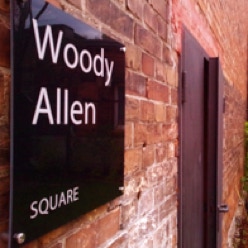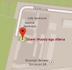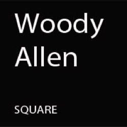 On Woody Allen 78th birthday, the 1st of December 2013 artifact Woody Allen Square was unveiled. The graphic of dimensions 40x40 centimeters that consists of typography of one element shape in white color - Woody Allen SQUARE, in black application. We will not be able to avoid the reference to Malewicz. The works of this Russian abstractionist were named by the author himself supremacist compositions extending from the narrative totally detached from reality and therefore in contrast to his first composition "Black square on the white background". By interfering the space of black square inscribed in English, the message gives the multilayered meanings. Black square does not exist in nature and that is why it completes the landscape of the square as a symbol of human superiority over the chaos.