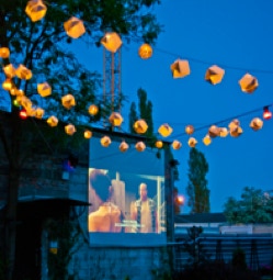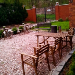 The protective barrier, divided by the boxwood, which laid the foundation of the hedge was extended. Sidewalk was remodeled. New brick – pebble surface in relation to the surrounding elevation (symbolizes boundless sea – in Japanese garden aesthetics) gained some space for artists to meet in which like boats, moored wooden chairs and armchairs appeared and over the tables hung the bridge with garlands made up of dozens of lanterns. This place was created for people to connect with nature where they can feel its rhythm and changing beauty. In this place blending of, European, American and Asian aesthetics are pointing to a multicultural personality of Woody Allen. Work that was done towards creating that space was noticed in publication “ The guide for students and from students of Warsaw Academy of Fine Arts”. Katka Blajchert in the talk with Kuba Maria Mazurkiewicz mentions: “For example we have a student of professor Szymanski, Dariusz Zawislak, who together with Janek Przybyszewski sow grass from their own funds. They developed the area making it into a nice open place”. Information about Allen’s square is also given by cycling tour guides to people who come near Powązki. Allen’s square also became an inspiration of work of Elen Lol Lola (Elena Leszczynska and Nadia Issy).