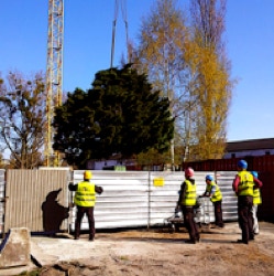 The immediate reason for naming Woody Allen Square was an incident that happened in New York. In November 2013 when the owner of basketball team Knicks – James Dolan asked Woody Allen to the VIP section that is placed in Madison Square Garden. A group of professors and students “welcomed” him in Warsaw Academy of Fine Arts giving his name to a green corner. The reconfiguration works started in March 2014. Once again the layer of earth has been applied. The grass was planted and huge old yews were planted that were rescued from logging on the neighboring property. Like in English garden the flowers and grass were planted in beds. The crown of the youngest, 9 years old three got the geometrical shape of a cube. The shaping work took five days and two days after it was finished the three was cut by construction workers – in spite of the promoter protest directed to the facility manager. The tree could be easily transplanted to a different place, the same as a new place that was found for Christmas trees. Ivy is growing on the north part of the building of the photographic studio on specially constructed steel scaffolding.