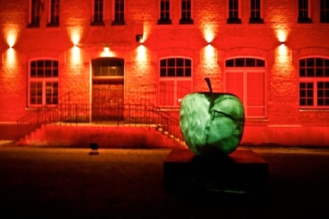 The screen for the projection has been monumental monochromatic apple sculpture that has been presented on the stage in a form of block cut from the cube where the foundation was a square and height of 1/4 of a square. We have an apple in a square. Fruit that is part of nature on a geometric shape is not occurring in the environment. The clash of two worlds: nature and culture that show their mutual struggles. “The Big Apple” is a symbol of Manhattan. Apple that presents itself majestic on a quarter that is a part of orderly system of this city and culture and its density. An apple: symbol of power and temptation.